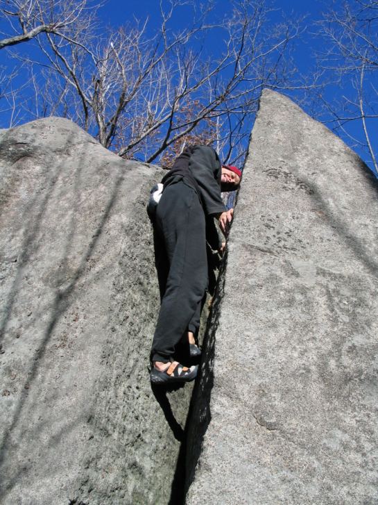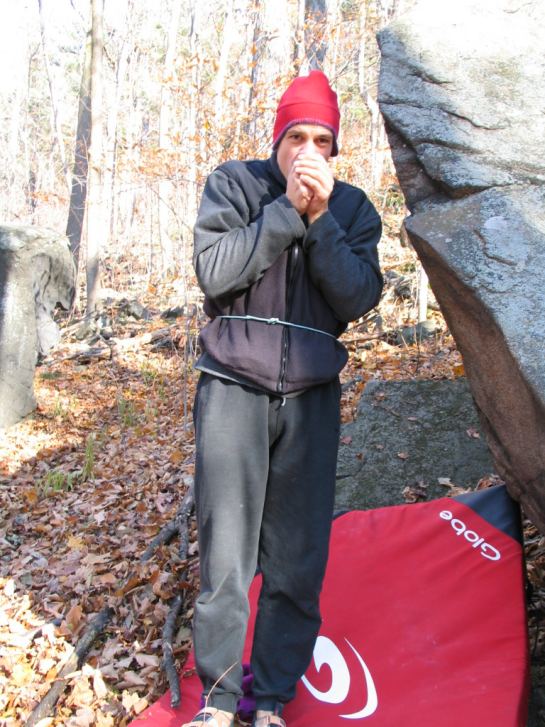 Par une journee bien froide mais tres belle on fait une petite balade dans la foret de Saint-Hilaire et un peu de bloc au passage.